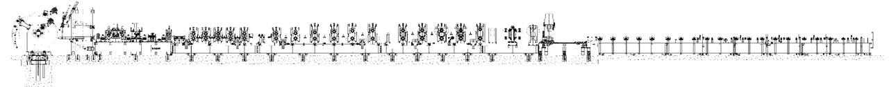 TF鋼管束冷彎生產(chǎn)線,具備中板開(kāi)卷、校平、剪切對(duì)焊,輥壓成型,剪斷、碼垛等自動(dòng)化流水生產(chǎn)功能。主機(jī)可生產(chǎn)腰高240mm,底寬130mm,厚度3-6mm多規(guī)格鋼管束制件;只需3分鐘,就可調(diào)整生產(chǎn)型鋼的高度、寬度規(guī)格;大型伺服跟蹤飛剪,在內(nèi)首次實(shí)現(xiàn)了不降低速無(wú)廢料切斷。